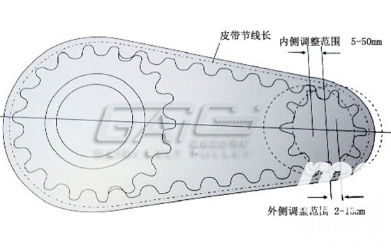Dp=p×Z/∏ Dp: 节径 Z : 齿数 ∏: 圆周率 同步带轮实际外圆直径计算: De= Dp-2δ Dp:节径 δ:节顶距同步带轮中心距及同步带节线长计算